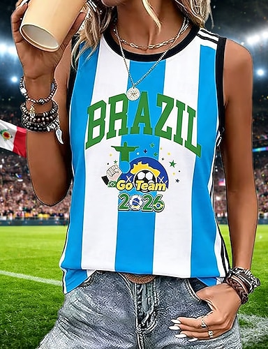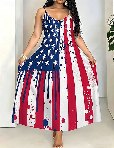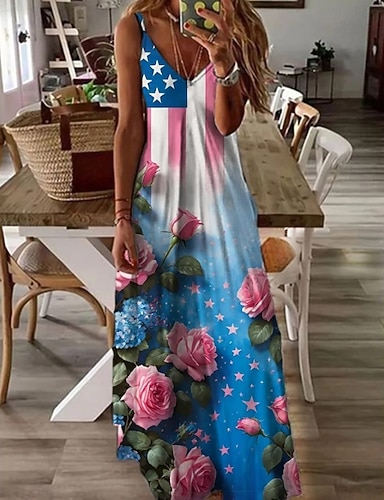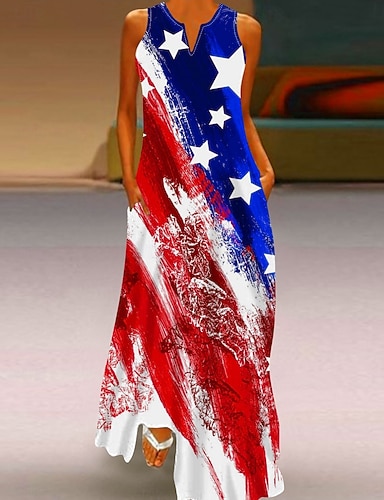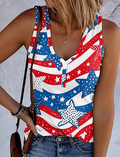 Giorno dell'Indipendenza Americana Per donna Canotta Stampato Grafico Bandiera Vintage Tropicale Elegante Senza Maniche Scollo a V Top Regolari Quotidiano Blu Bianco Rosso Azzurro Estate Primavera
