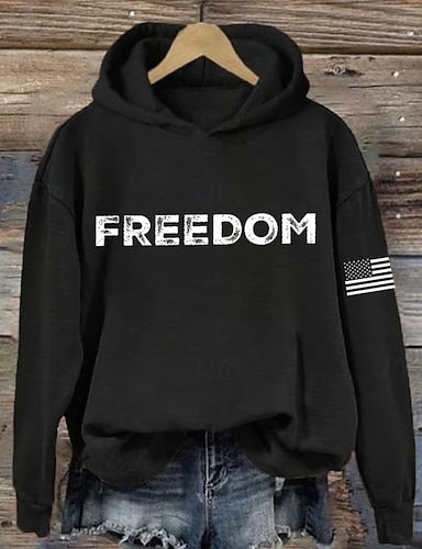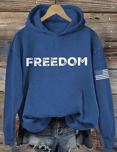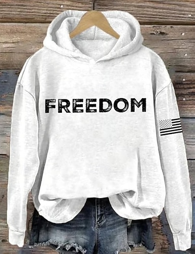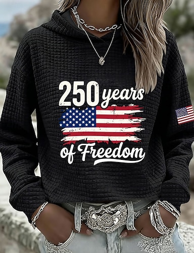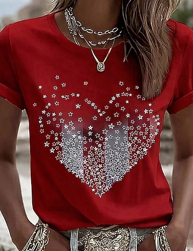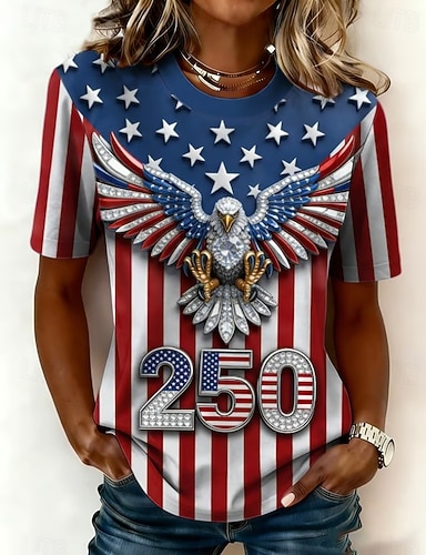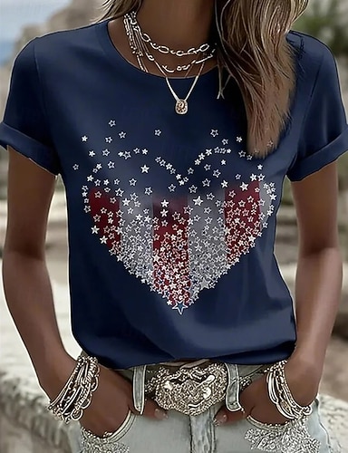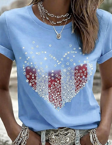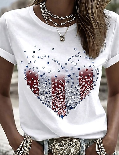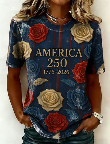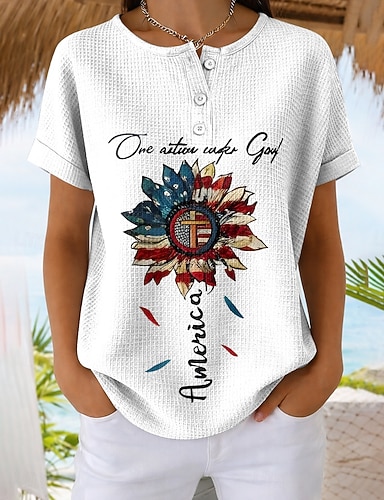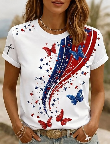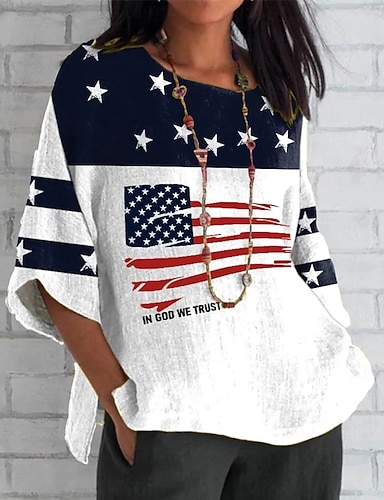 Grafica Bandiera patriottica delle donne per il Giorno dell'Indipendenza Vintage Elegante Casual Top Regolari Vestibilità Giornaliera Bianca Rossa Blu Primavera