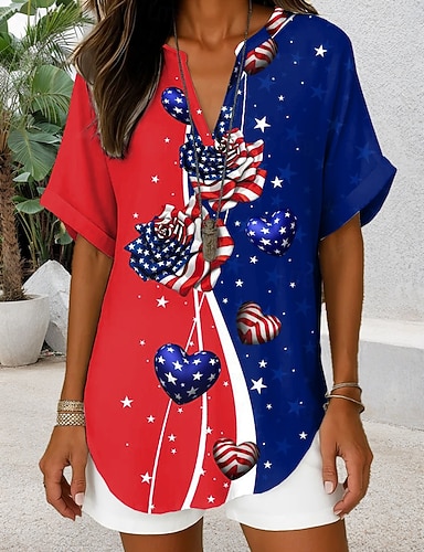 Giorno dell'Indipendenza Americana Per donna Camicia Bottoni Stampato Grafico Bandiera Americana Vintage Elegante Moderno Manica Corta Colletto a Camicia Top Regolari Casuale Quotidiano Blu Rosso