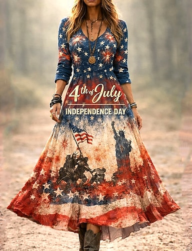 Maglietta patriottica da donna per il Giorno dell'Indipendenza bandiera elegante casual maniche lunghe colletto a V tops regolari stampa quotidiana bianca rossa blu verde primavera pre-autunno