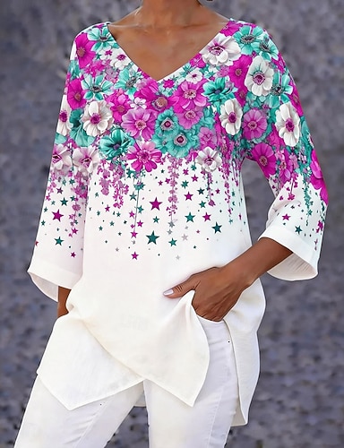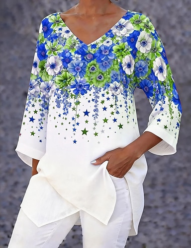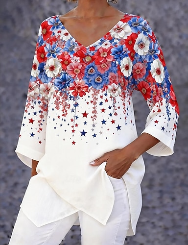 Giorno dell'Indipendenza Blusa Patriottica da Donna Grafica Bandiera Vintage Elegante Casual Maniche 3/4 Lunghe Collo a V Magliette Regolari Quotidiane Bianco Rosso Blu Estate Primavera