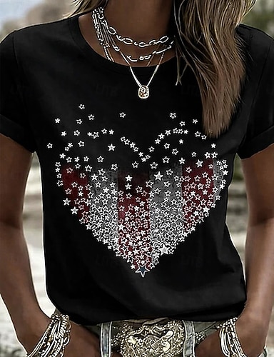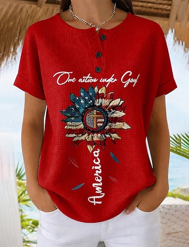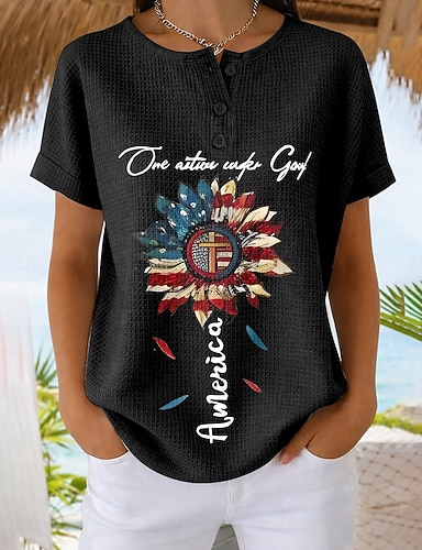 Per donna Camicie di cotone e lino Maglietta Stampato USA Casual Manica Corta Girocollo Top Regolari Vacanza Giorno dell'Indipendenza Nero Vino Blu marino Estate