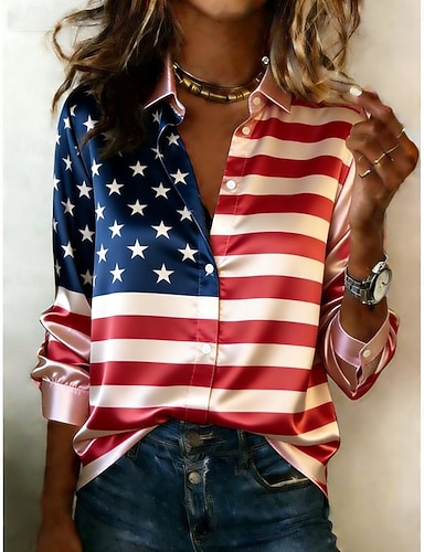 Giorno dell'Indipendenza Americana Per donna Camicia Camicia in raso Camicia button-down Camicia casual Stampato Grafico A righe Classico Casual Manica Lunga Colletto a Camicia Top Regolari
