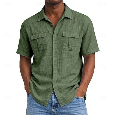 Per uomo Camicia Camicia di lino Camicia Estiva Camicia da Spiaggia Semplice All'aperto Vacanza Nero Bianco Blu marino Cachi Manica Corta Collo ripiegato Estate Primavera Abbigliamento Tasca