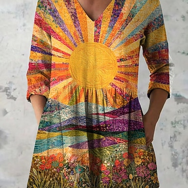 Per donna Camicia Tunica Top estivi Bottoni Ombre Grafico Vacanza Vintage Quotidiano Manica Lunga Scollo a V Top Regolari Casuale Quotidiano Ferie Blu Giallo Verde Estate Primavera Autunno