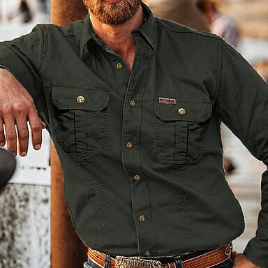 Per uomo Camicie da lavoro Camicia da lavoro Camicia cargo Blu marino Kaki Grigio chiaro Verde militare Manica Lunga Semplice Collo ripiegato Vacanza Streetwear Tasca Frontale Abbigliamento Cotone
