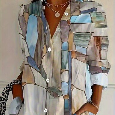 Per donna Camicia Camicia button-down Camicia casual Camicia da Spiaggia Stampato Grafico Elegante Classico Casual Manica Lunga Colletto a Camicia Top Regolari Quotidiano Ferie Uscire Blu Nero Viola