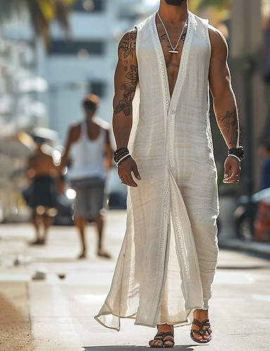 Per uomo Camicia Camicia di lino Camicia popover Camicia Estiva Abbigliamento da spiaggia Camicia con cappuccio Tinta unica Casuale Vacanza Blu Nero Bianco Blu marino Manica Corta Con Cappuccio
