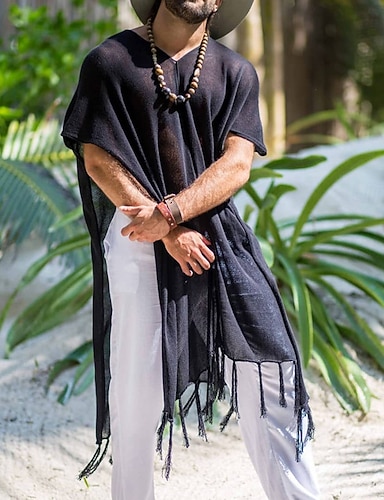 Per uomo Camicia Estiva Camicia casual Camicia da Spiaggia Camicia di cotone Bolero Albicocca Manica Corta Colore Solido / Tinta Unita Con Cappuccio Vacanza Camicia hawaiana Abbigliamento Moda Casual