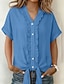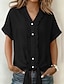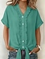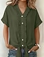 Per donna Camicia Camicia in cotone e lino Blusa Bottoni Semplice Elegante Classico Moderno Manica Corta Scollo a V Top Regolari Quotidiano Ferie Uscire Blu Nero Bianco Verde militare Rosso Estate