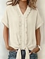 Per donna Maglietta Camicia di cotone Finto cotone e lino Volant Bottoni Tinta unica Moda Elegante Classico Manica Corta Scollo a V Top Regolari Quotidiano Uscire Weekend Blu Bianco Rosa Beige Estate