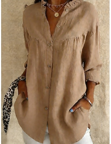 Per donna Camicia Camicie di cotone e lino Blusa Finto cotone e lino Bottoni Semplice Elegante Classico Moderno Manica Lunga Collo alla coreana Top Regolari Quotidiano Ferie Uscire Nero Viola Cachi