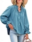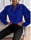 Per donna Camicia Camicia button-down Camicia casual Blusa Pieghettato Bottoni Tinta unica Semplice Elegante Classico Moderno Manica Lunga Collo alla coreana Top Regolari Quotidiano Ferie Uscire Blu