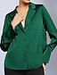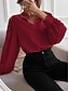 Per donna Camicia in raso Camicia elegante Blusa Arricciato Tinta unica Elegante Vintage Manica Lunga Collo alla coreana Top Regolari Quotidiano Feste Blu Verde salvia Rosso Verde Primavera Autunno
