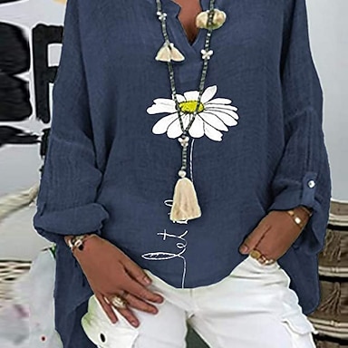 Per donna Camicie di cotone e lino Finto cotone e lino Stampato Floreale Essenziale Casual Manica Lunga Colletto a Camicia Top Regolari Quotidiano Bianco Rosa Blu marino Viola Estate Autunno