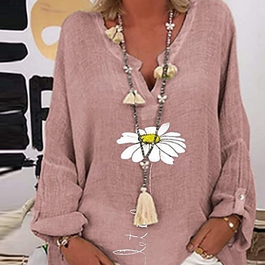 Per donna Camicia Blusa Finto cotone e lino Semplice Casual Manica Lunga Scollo a V Top Regolari Quotidiano Ferie Uscire Giallo Rosa Cachi Grigio Estate Primavera