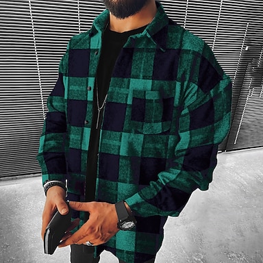 Per uomo Giacca-camicia Giacca camicia Giacca invernale Plaid Vacanza Abbigliamento quotidiano Rosso Azzurro cielo Verde scuro Arancione Manica Lunga Con Cappuccio Autunno Inverno Abbigliamento Tasca