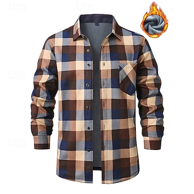 Per uomo Camicia in pile Giacca-camicia Giacca camicia Giacca invernale Plaid Vacanza Abbigliamento quotidiano Beige Manica Lunga Bavero Autunno Inverno Abbigliamento Tasca