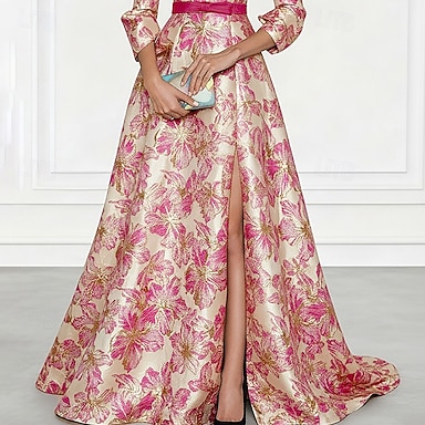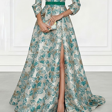 Linea ad A Lunghezza al pavimento Abito Camicia Abito da invitata a nozze Abito Formale Abito da cerimonia per signora Manica Lunga Colletto a Camicia Elegante Vintage Matrimonio Formale Nylon con