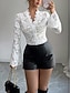 Per donna Camicia Blusa Top in pizzo Maglie a manica lunga Pizzo Floreale Elegante Classico Moderno Manica Lunga Scollo a V Top Regolari Quotidiano Ferie Uscire Bianco Estate Primavera