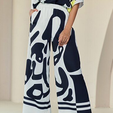 Per donna Abbigliamento da Casa Set Pigiama Moda Semplice Casual Grafico Pigiama in raso di seta Elastico in vita Pantalone Casa Vacanza Manica Lunga Colletto a Camicia Blu Estate Primavera Autunno