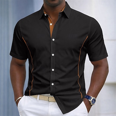 Per uomo Camicia Camicia casual Camicia con Bottoni Camicia Jacquard Blu Nero Rosa Albicocca Manica Corta Blocco di colori Colletto a Camicia Casuale Quotidiano Tasca Frontale Abbigliamento Elegante