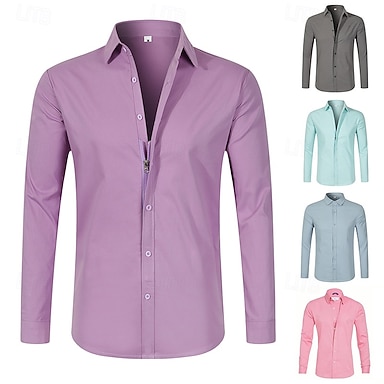 Per uomo Camicia Camicia elegante Camicia Oxford Camicia con Bottoni Semplice Matrimonio All'aperto Blu chiaro Nero Rosa Viola Manica Lunga Bavero Estate Primavera Abbigliamento Cerniera