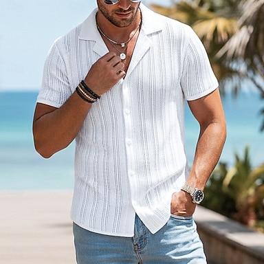 Per uomo Camicia Tessuto Camicia casual Camicia Jacquard Nero Bianco Cammello Albicocca Manica Corta Semplice Testurizzato Colletto cubano Casuale Abbigliamento casual alla moda Jacquard Abbigliamento