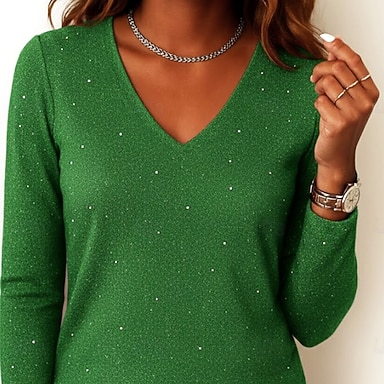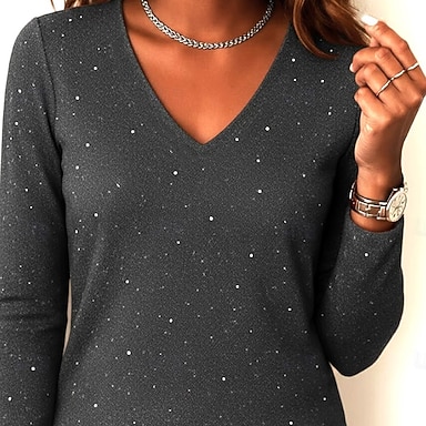 Capodanno Per donna Top con paillettes Paillettes Elegante Festa Moderno Scollo a V Top Regolari Festa serale Abbigliamento da sera Blu Rosso Marrone chiaro Viola Marrone Primavera, Autunno, Inverno