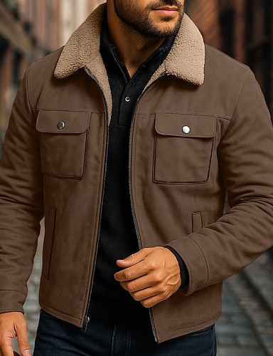 Per uomo Giacca in finta pelle scamosciata Giacca Sherpa Giacca in Camoscio Marrone Casuale Quotidiano Calore Termico Tasca Autunno Inverno Attivo Vintage Regolare Nero Marrone Grigio Giacca
