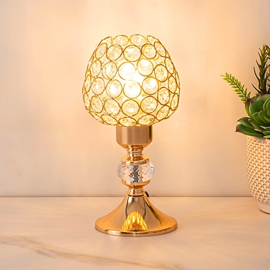 Lampada da comodino ricaricabile con candela in cristallo dorato, luce calda da 3000 K, dimmerabile, per camera da letto, matrimonio, decorazioni natalizie