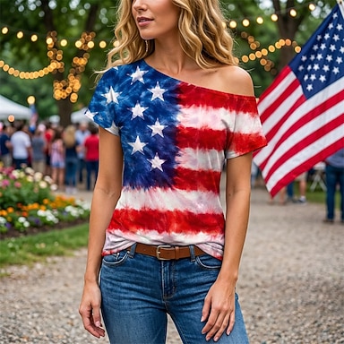 250° anniversario USA Retrò Vintage Anni '80 T-shirt Monospalla Maniche corte Bandiera USA Costume Per donna 4 Luglio Giorno dell'Indipendenza Adulti Maglietta