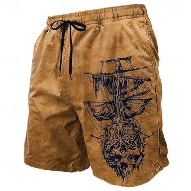 Per uomo Teschio Nautico Barca a vela Costumi da bagno Pantaloncini da mare Pantaloncini da Surf Misura del girovita medio Retrò Vintage All'aperto Vacanza Abbigliamento Quotidiano Tasche Laterali