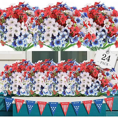 24 mazzi di fiori artificiali per esterni, decorazioni patriottiche, 250° anniversario, 4 luglio, giorno della memoria, giorno dell'indipendenza, fiori finti di plastica anti-sbiadimento per giardino,