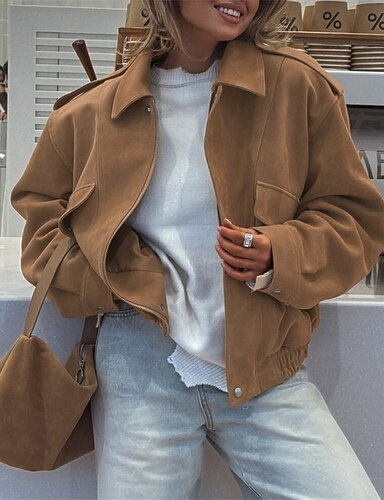 Per donna Cappotto Invernale Giacca Casual Gilet in pelle scamosciata Caldo Confortevole Cerniera Moda Casual Semplice Vacanza Casuale Abbigliamento quotidiano Uscire Regolare Collo ripiegato