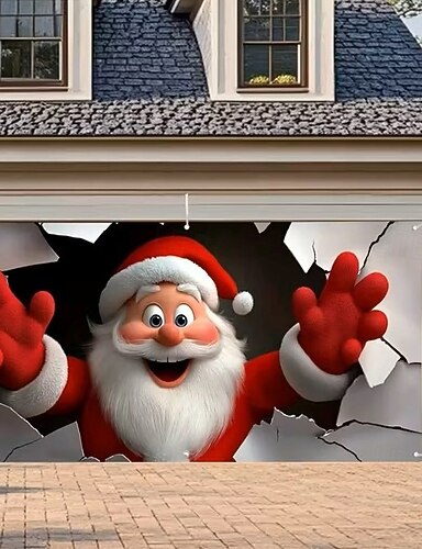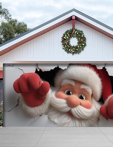Natale arazzo Copertura per porta del garage Grande appeso Babbo Natale Carino 3D Da serata All'aperto Vacanze Sfondi di ripresa Yarda Arredamento per la casa
