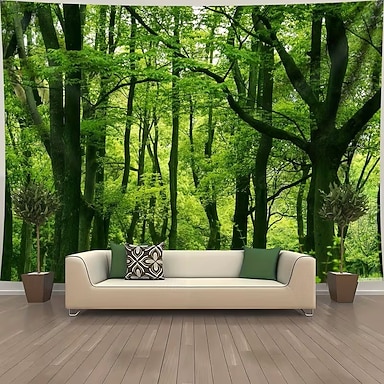Arazzo da parete con foresta verde, paesaggio naturale, arazzo da parete con alberi panoramici nel bosco per camera da letto, soggiorno, dormitorio, decorazione per la casa.