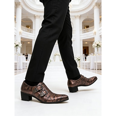scarpe da uomo in similpelle marrone con doppio cinturino e design fantasia, eleganti scarpe da sposa, perfette per lo sposo e gli invitati al matrimonio