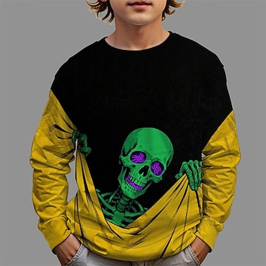 Halloween Ragazzi 3D Teschio Maglietta Manica Lunga Primavera Autunno Moda Essenziale Bambini 4-12 Anni Girocollo All'aperto Casuale Quotidiano Vestibilità regolare