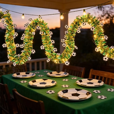 Luci a LED in rattan per calcio mondiale, 3 m, 20 LED, decorazione per bar, centro commerciale, ristorante, scena di eventi, alimentata a batteria, decorazione per feste in giardino, casa