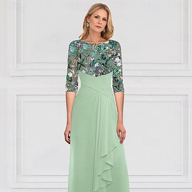 Linea ad A Abito Lunghezza alla caviglia Perline ricamate Vestito da Festa Abito da Cocktail Abito da cerimonia per signora Mezza Manica Scollo Illusione Elegante Vintage Ospite di nozze Chiesa