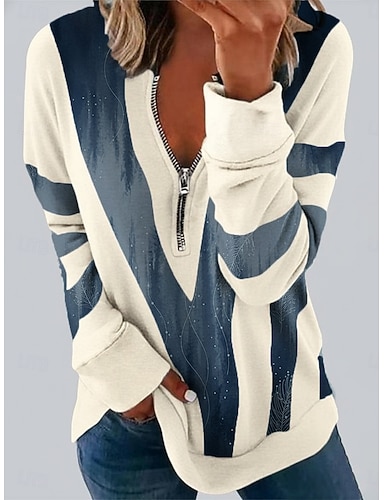 Per donna Felpa Pullover Felpe con cerniera Cerniera Stampato Grafico Geometrico Moda Casual Manica Lunga Girocollo Top Regolari Casuale Streetwear Abbigliamento Quotidiano Blu Primavera Autunno