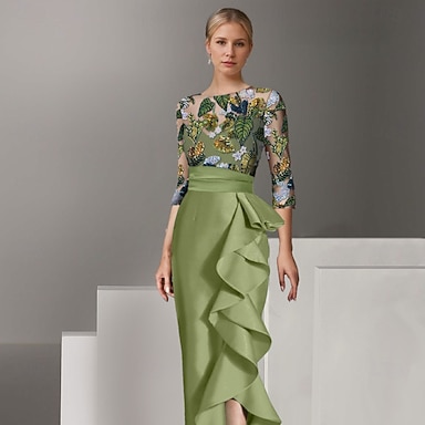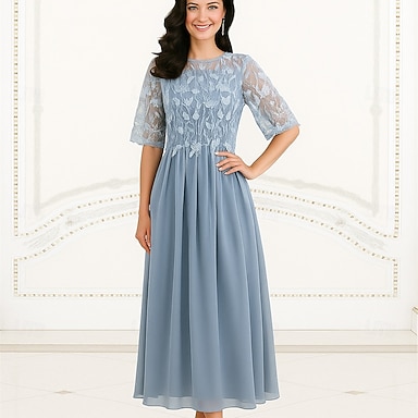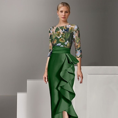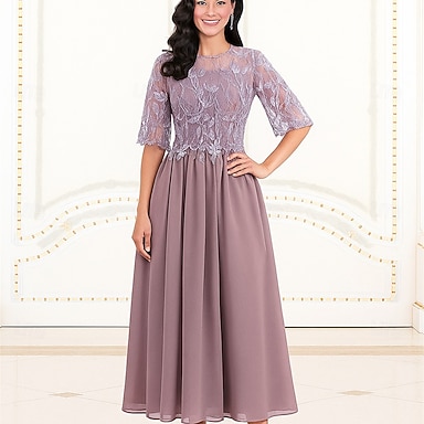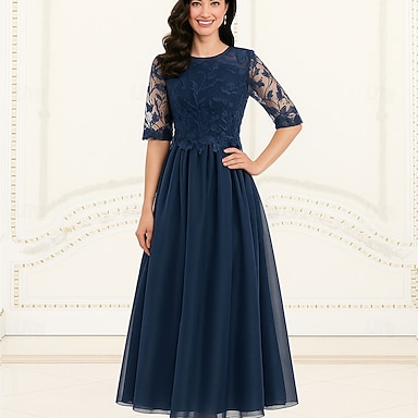 Linea ad A Lunghezza alla caviglia Vestito da Festa Abito da Cocktail Abito da cerimonia per signora Manica 3/4 Girocollo Elegante Semplice con Pizzo