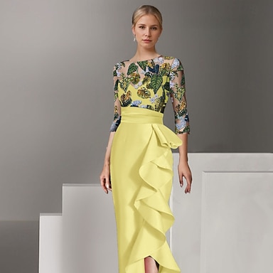 Linea ad A Abito Lunghezza alla caviglia Vestito da Festa Abito da Cocktail Abito da invitata a nozze Abito da cerimonia per signora Mezza Manica Collo gioiello Elegante Vintage Trasparente Formale