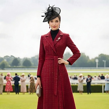 Abito da festa a linea A di lunghezza tè Abito da cocktail Abito da invitata di matrimonio Abito per la madre della sposa a maniche lunghe colletto da camicia elegante minimalista formale con cintura