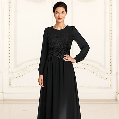 Abito nero in linea A lunghezza caviglia lunghezza ginocchio abito da festa abito da cocktail abito per la madre della sposa manica corta collo a giro collo a V elegante vintage festa formale