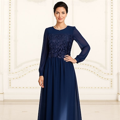 Abito da invitata al matrimonio A linea lunghezza sul pavimento abiti formali abito da sera abito per la madre della sposa manica lunga collo a giro elegante vintage festa con pieghe colore bloccato