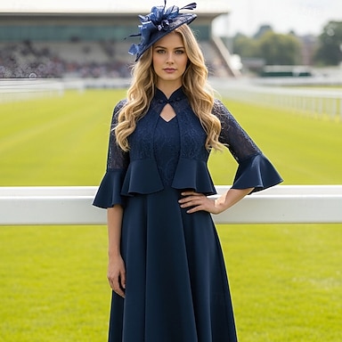 Linea ad A Abito Lunghezza Tè Vestito da Festa Abito da Cocktail Abito da invitata a nozze Abito da cerimonia per signora Manica 3/4 Collo gioiello Elegante Vintage Festa Ospite di nozze Ferie Serata