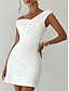 Per donna Mini Abito Tubino Elegante Festa cocktail All'aperto Feste Ospite di nozze Arricciato Vestibilità regolare Tinta unica Senza Maniche Senza Spalle Bianco