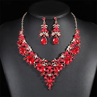 set di gioielli da donna con perle e strass per feste: elegante collana con pendente a goccia di cristallo e orecchini pendenti per spose, serate ed eventi formali
